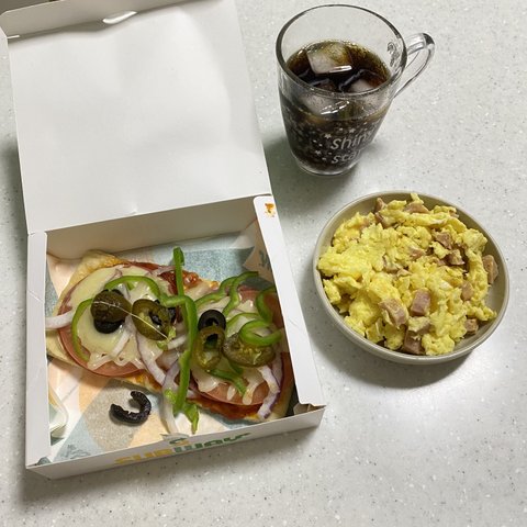 피자가 먹고싶었는데 혼자 시켜먹긴 양이너무 많아서 집앞 서브웨이에서 이탈리안 플랫피자 먹었어요