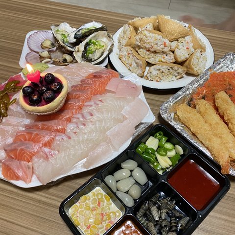 크리스마스는 회❤️ 날것을 너무 많이먹어서 구충제잘챙겨먹어야겠어요.. ㅋㅋㅋ 저희는 케익을 안좋아해서 블루베리타르트로 크리스마스기분내봤어요 히히 초너무 귀엽죠ㅋㅋㅋ 저의 최애 횟집에서 시켰는데 역시 최고 사장님 부자되세요 유부초밥이랑 회랑 궁합도 좋고 기분도 좋아서 과음 과식했어요...ㅎㅅㅎ