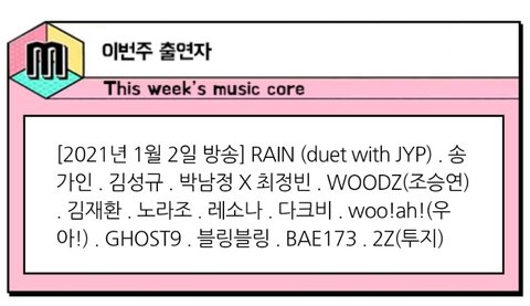성규 이번주 토요일에 ㅇㅈ 나온대! 스밍 놓치지 말고 계속하자!! 인스피릿 중에 시청자위원회 당첨된 사람들 많은거 같던데 이번주 후보에는 성규 없는것 같더라..ㅎㅎ 스밍만 놓치지 말고 열심히 해보자❤