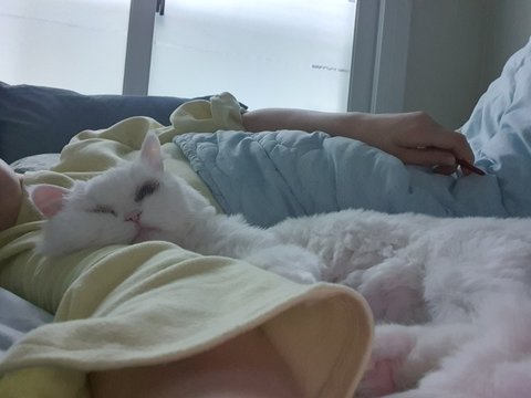 코로나가 뭐냥?누나가 코로나인지때문에 걱정이 많았다옹.퇴근하면 바로 만져주지도 않고... 얼굴 가리고 들어와서 누군가 할때도 있고..