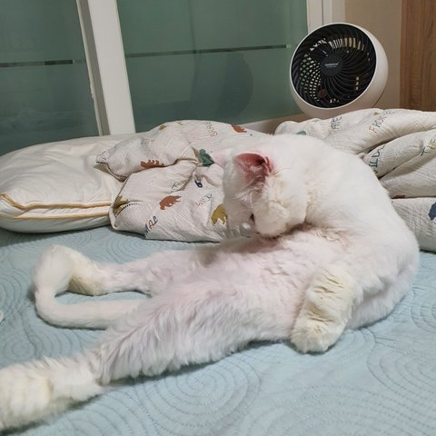 이제 내가 나이가 많다고 누나가 내 미용은 최대한 미루고 있다옹.