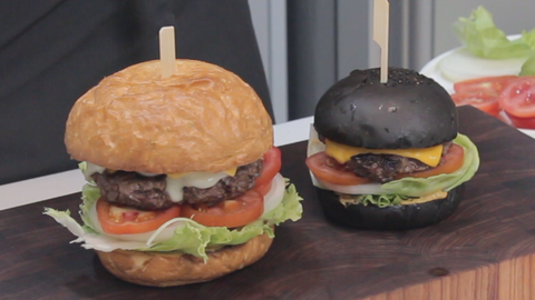 블랙 번을 이용한 햄버거와 빠네 빵을 이용한 자이언트 버거 두 종류를 만들어 봤습니다>~<