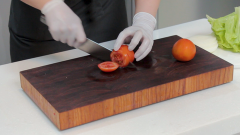 토마토와 양상추, 양파 그리고 아보카도를 먹기 좋은 크기로 잘라 주세요