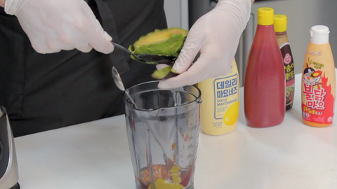 마요네즈, 불닭소스, 아보카도 반개 등 맛있는 소스들은 다 때려 넣어줍니다^~^