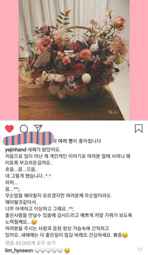 손예진이 열애설관련 인스타 글쓴거 봤냐