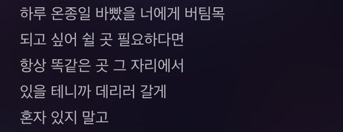 어쩜 이렇게 가사를 적을 수 있는건지 편곡된 노래랑 너무 잘 어울려서 더 감동적인 시너지를 줌