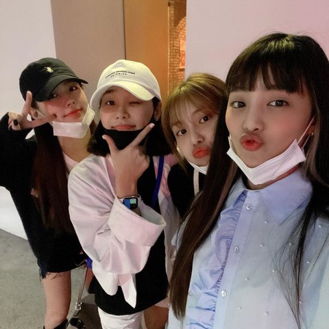 AOA 유나혜정이랑 미연민니야! 민니랑 혜정은 퀸덤 보컬무대할때 쌓은 친목이고 미연유나는 퀸덤때 미연이가 계속 말걸어서 친해졌대! (처음에 사실 민니빼고 구분못했다...ㅎㅎ)
