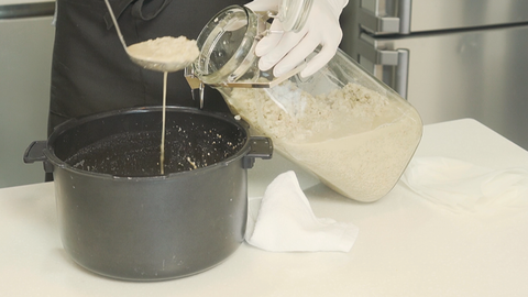 이때 물과 재료의 비율이 중요한데, 물이 많으면 막걸리가 시어지기 때문에 비율을 잘 맞춰야 합니다
