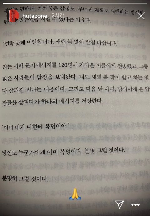 "연락 못해 미안합니다. 새해 복 많이 받길 바랍니다......"