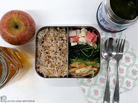 도시락 전체를 보온도시락으로 싸기엔 부피와 무게가 너무 부담스러워 국만 보온병에 담곤 합니다.