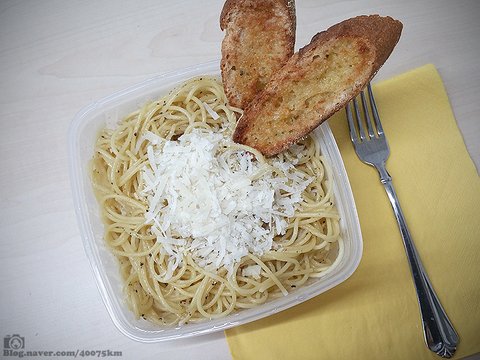 전자레인지에 데워먹어야 하기 때문에 진짜 맛있는 수준은 불가능하지만, 그래도 물 좀 넣고 데워서 잘 섞은 다음 뜨거울 때 치즈 듬뿍 뿌려먹으면 나쁘지 않습니다. 치즈는 집에서 미리 갈아서 지퍼백에 넣어 온 파마산 치즈.