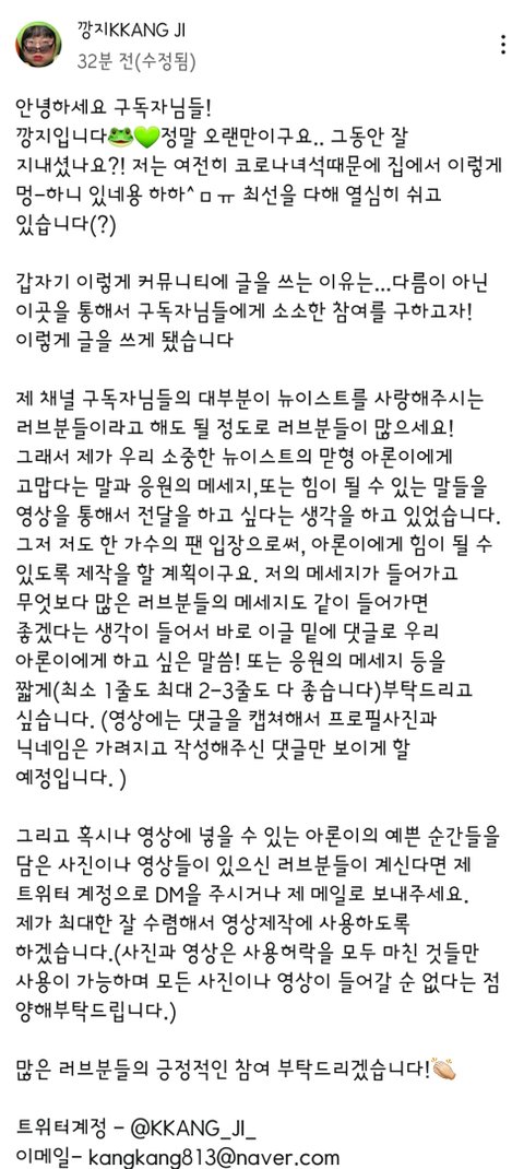 이분이 아로니 위해서 응원 메시지 모으시나봐 많관부❤
