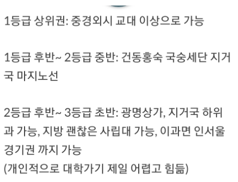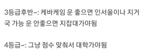 사실상 2등급 후반부터는 대학가기 힘듬ㅋㅋㅋㅋㅋ