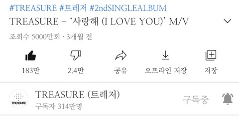 사랑해 5000만뷰 됐어 트레저 파이팅!!