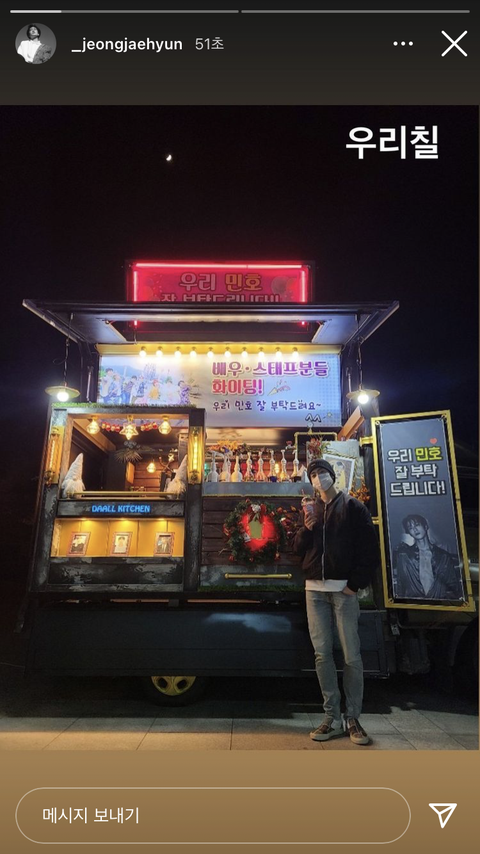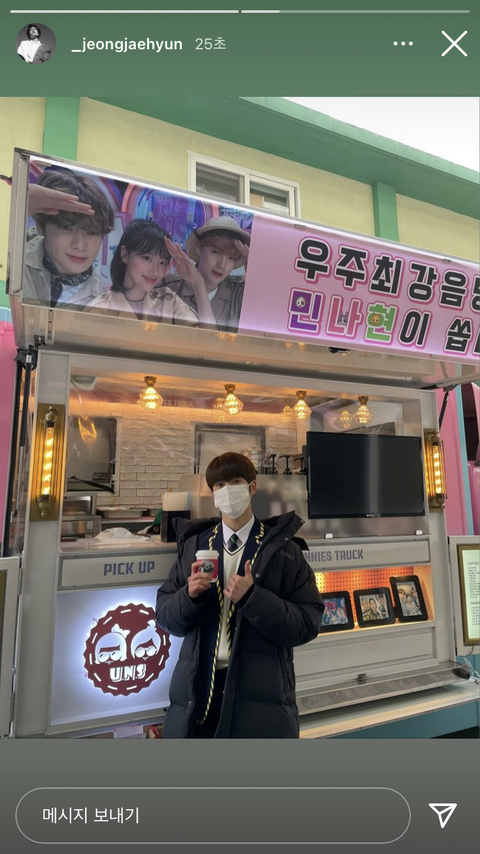 민나현이 보내준 커피차까지 ㅠㅠ 재현이 추울텐데 아프지않고 무사히 촬영 끝냈음 좋겠다