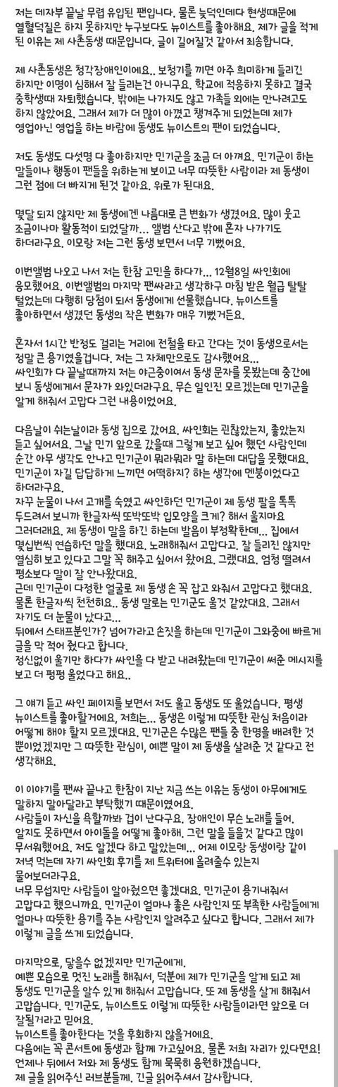 뉴이스트 팬싸인회 후기가 하나 올라오는데