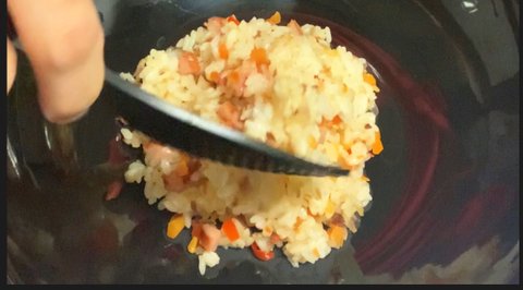 밥이 볶아지면 그릇에 흐트러지지 않게 덜어내고