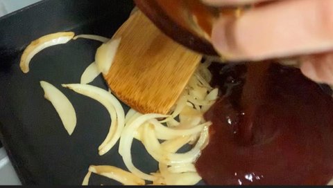 슬라이스한 양파가 볶아지며 갈색빛이 나면