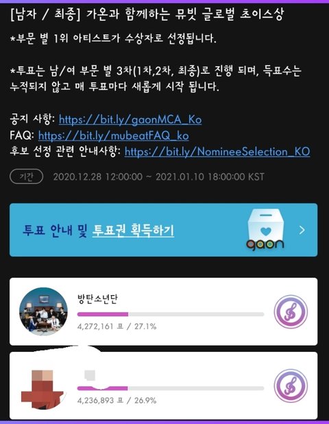 +10일에 7ㅏ온 투표 마감이니 뮤!빗 투표권 잘챙기기:)