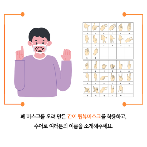 2. 오려낸 마스크를 착용하고 수어로 자기소개와 이름 묻기