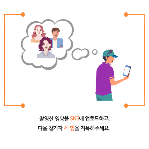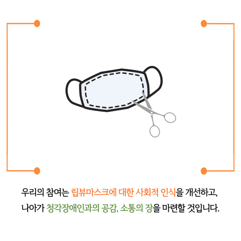 뉴이어챌린지는 입 모양이 보이도록 오린 폐 마스크(이는 립뷰마스크의 형태를 묘사하기 위함입니다. 이는 평소에도 해당 방식으로 마스크를 착용하자는 의도가 아닌, 립뷰 마스크에 대한 친숙도를 높이는 것을 목적으로 합니다.)를 착용하고, 수어로 내 이름을 소개하는 영상을 인스타그램에 업로드한 뒤 다음 참여자 3명을 태그하는 형태로 진행됩니다. 구체적인 참여 방법은 아래와 같습니다.