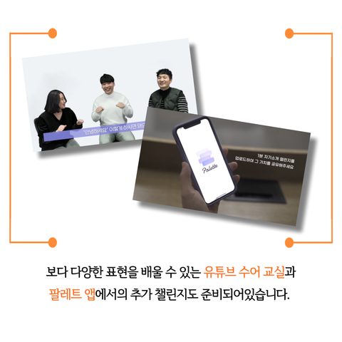 *이 프로젝트는 서울수어전문교육원, 연세대학교 경영대학, 팔레트, 사랑의 달팽이와 함께합니다.