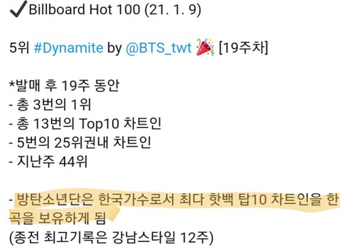 최다 핫백 탑10 차트인한 곡 기록 생김