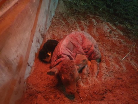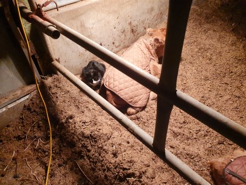 아기 송아지들 추울까봐 켜두는 따뜻한 할로겐등 아래에서 송아지랑 같이 찐우정 나누며 지내는 중 ㅋㅋㅋ