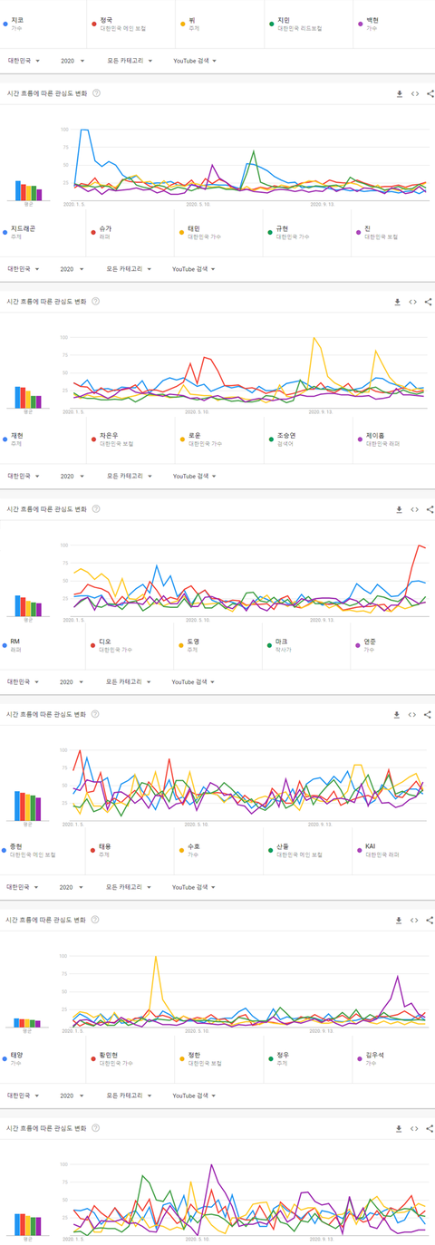 2020년 국내 유튜브에서 가장 많이 검색된 남자아이돌 TOP30