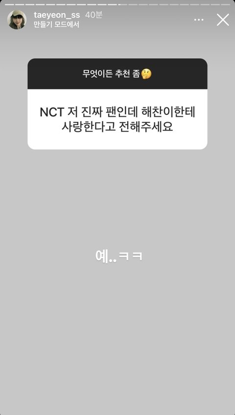 아 태연 스토리 봐 ㅋㅋㅋㅋ