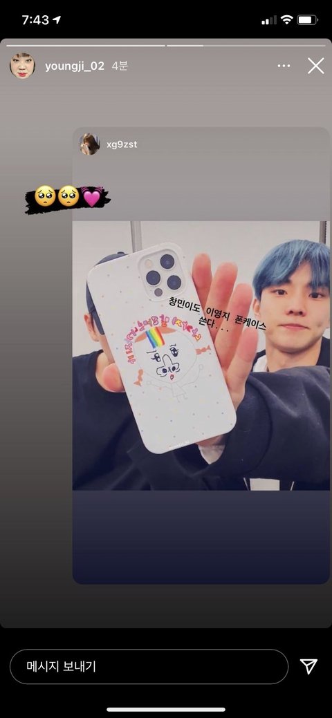 이영지님께서 폰케 만드셔서 판매했었는데 더보이즈의 큐라는 멤버도 구매해서 브이앱에서 자랑했나봐