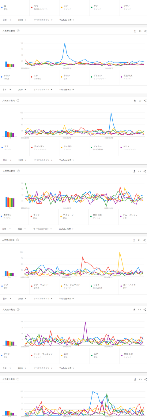 2020년 일본 유튜브에서 가장 많이 검색된 케이팝 여자아이돌 TOP30