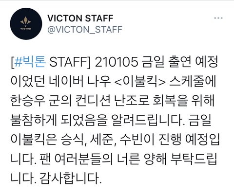 지금 내 친구 옆에서 거의 오열하고있는데.. 다음주가 빅톤 컴백아님? 빨리 나았으면 좋겠네