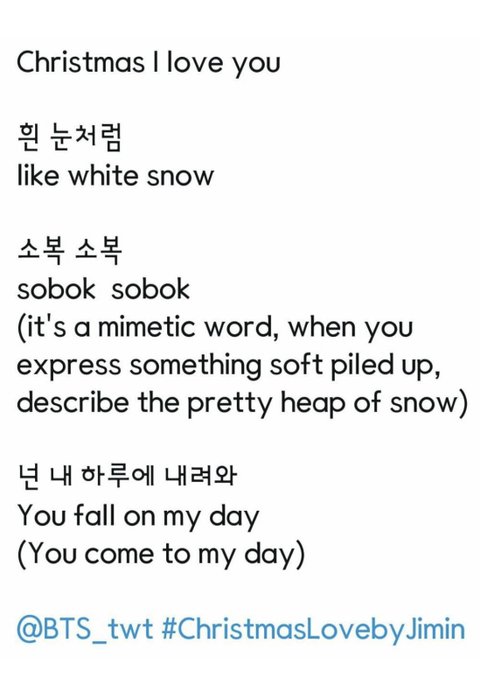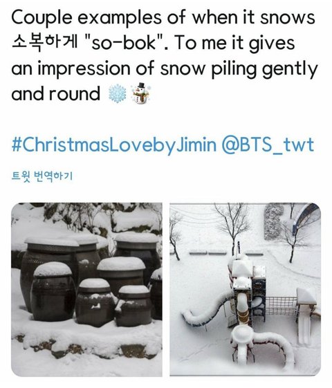 방탄 지민이 클스마스때 낸 자작곡 중 소복소복이라는 말이 쓰임