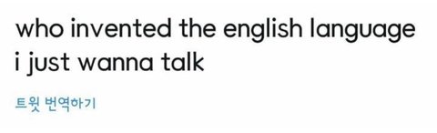 영어 신발 누가 만들었냐 나랑 얘기좀 해, 한국어 너무 로맨틱해 배우고 싶어, 영어 너무 제한적이다 등 한국어 찬양 영어 미워 시전하는 영어쓰는 아미덜