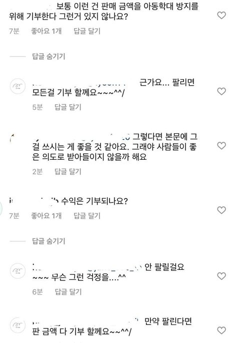 상품 상세 페이지 들어가도 기부, 후원이라는 멘트는 없음