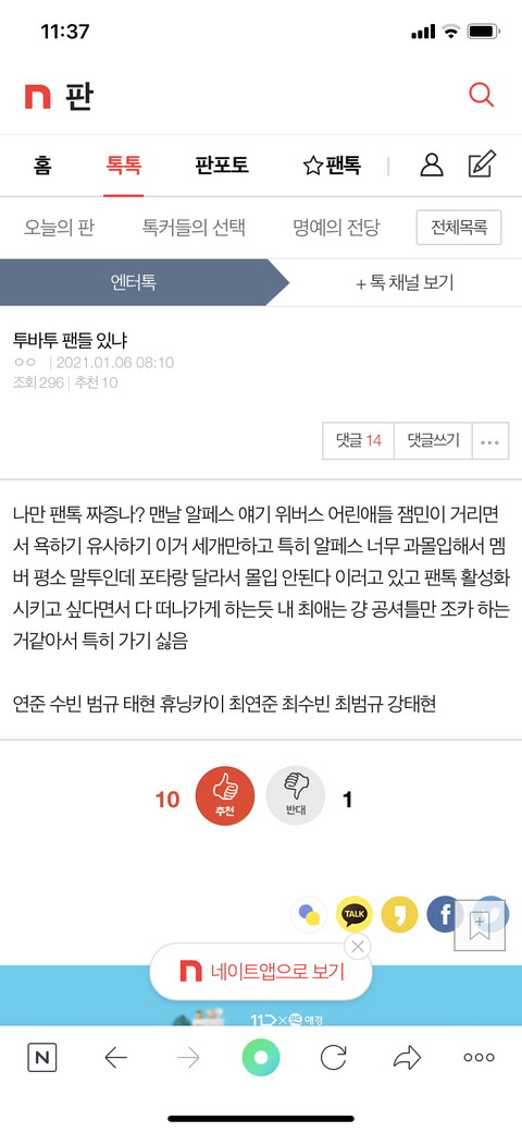 생각보다 싫은 사람 많나봐ㅏ 우리 공지바꿀 필요잇는듯
