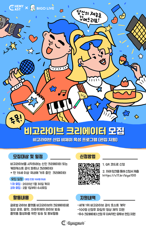 o 모집 대상 : 비고라이브를 시작하려는 신인 크리에이터 또는 케미캐스트 공식 파트너 크리에이터