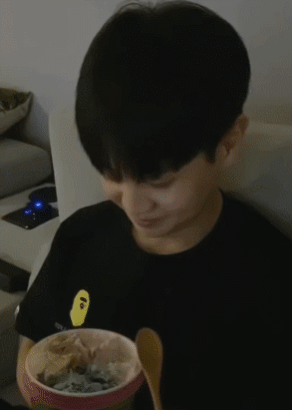 숟가락에 살짝 묻은 거 먹었는데 좋아하는 거 봐