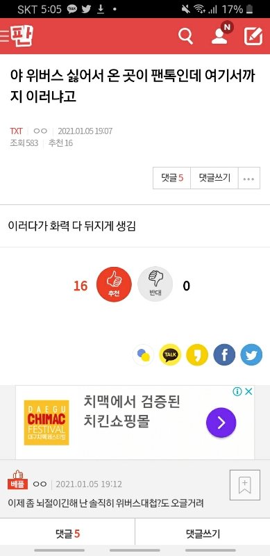 추천 16명에 베플까지 생김 걍 위버스는 멤버들이 쓴 글이나 댓글단것만 퍼날하자고 수용하겠다면서 갠플 이러면 달라지는게 없어
