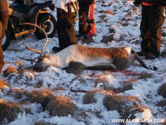 결국 살금살금 다가가서 수놈 캐리부 한 마리를 잡았습니다.