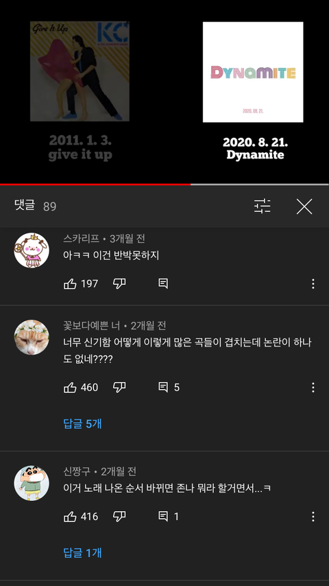 https://youtu.be/VJ2q9CGlmSM 방탄 다이너마이트 표절이라고 올라왔는데 ㅈㄴ 안 비슷해서 놀랐는데 댓글 반응 ㄴㅇㄱ