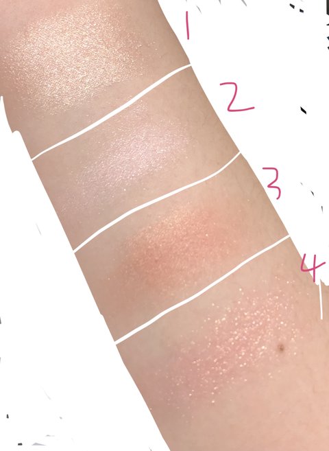 이건 펄 입자가 완전 곱진 않아 근데 눈 앞머리에나 애굣살에 마지막으로 톡ㅌ톡 포인트 줄때 세상에.. 그렇게 예쁠수 없더라 진짜 내가 이거 발색하면서 다시한번 감탄했어 요정이 된 느낌 난 핑크+금색펄 조합이 그렇게 예쁘더라