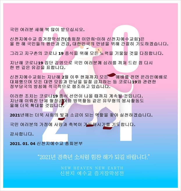 신축년 신천지예수교회 방역수칙 공지