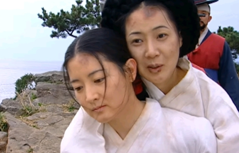 유배길 가는 길에 장금이 등에 업혀 죽는 한상궁