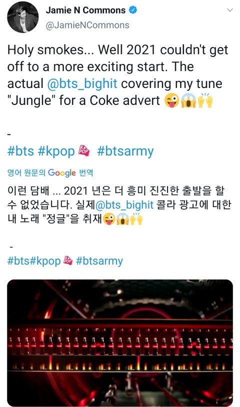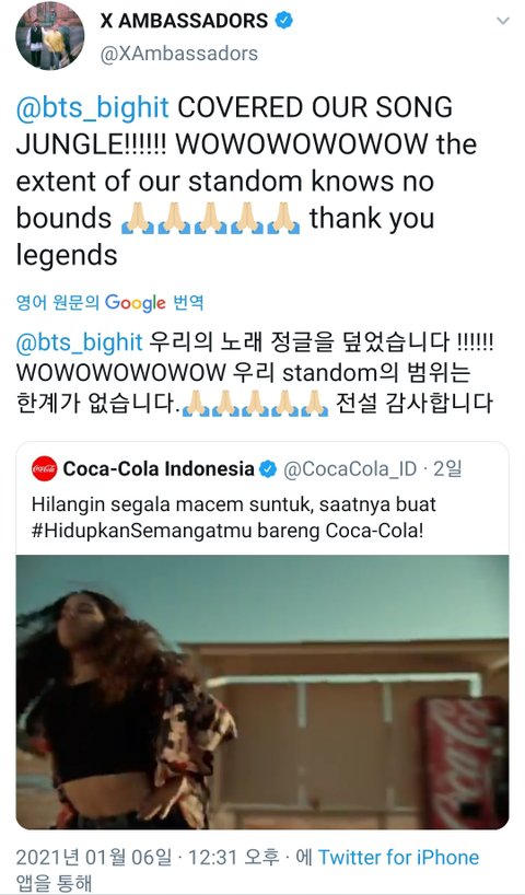 방탄이 부른 콜라광고송 원곡자 반응