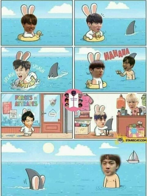 ㅋㅋㅋㅋㅋㅋㅋㅋㅋㅋㅋㅋㅋ조금 더 하자면 전정국은 김석진 상어 다가왔을때 도망가다가 코를 때릴려고 준비하고 있을거고 ㅋㅋㅋㅋㅋㅋㅋㅋㅋㅋㅋㅋ아 민윤기 김석진 표정 킬포네 ㅋㅋㅋㅋㅋㅋㅋㅋㅋㅋ