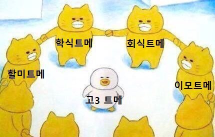 밑밑글 댓에서 주웠는데 ㅠㅠㅋㅋㅋㅋㅋㅋ 나도 이번에 고삼트메에서 학식트메로 진화했당 ㅋㅋ 울 고삼트메 아니 학생트메 학식트메 이모트메 다 ㅎㅇㅌ❤️