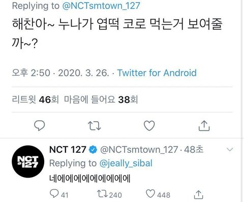 둘이 친하고 서로한테 제일 의지하는거느껴져서 너무 좋음 글고 마크가 해찬이 보고 너를 보면 시간을 보는 거 같다고 한거...진짜 눈물남