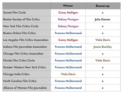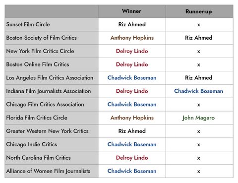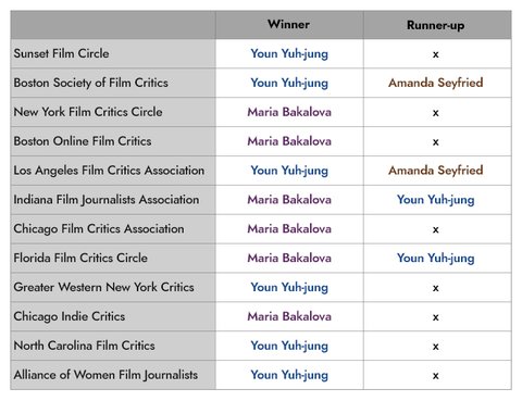 현재까지 연기상 부문(주조연) 20-21 비평가 레이스 결과